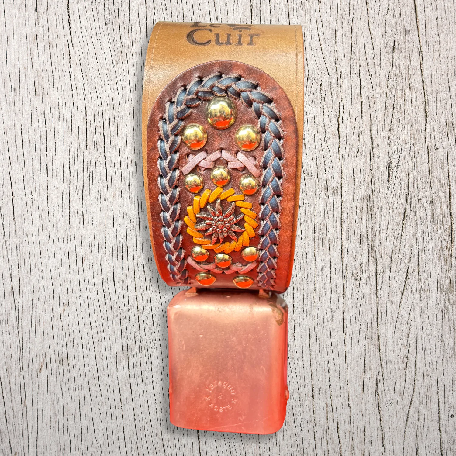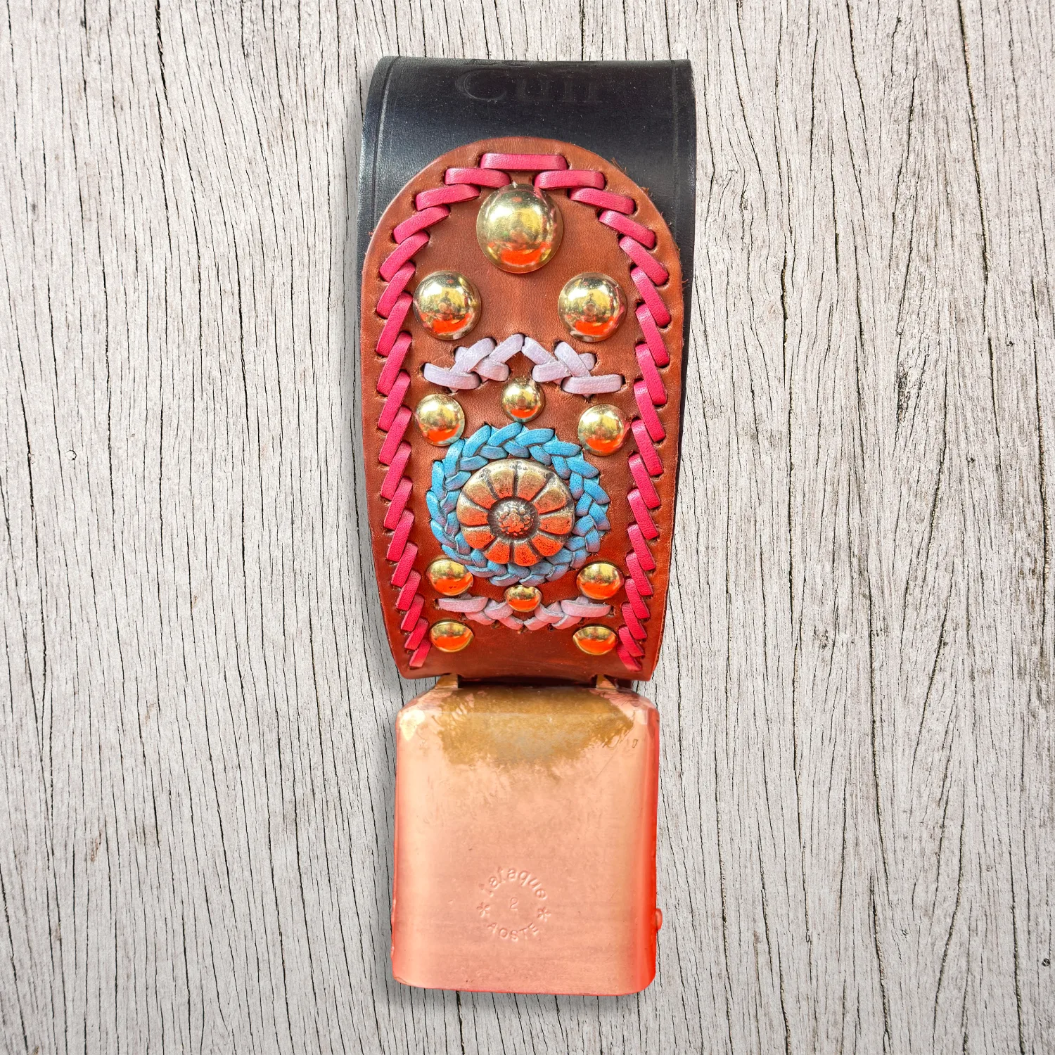 Campana per capra Tataque n. 2 con collare in cuoio decorato