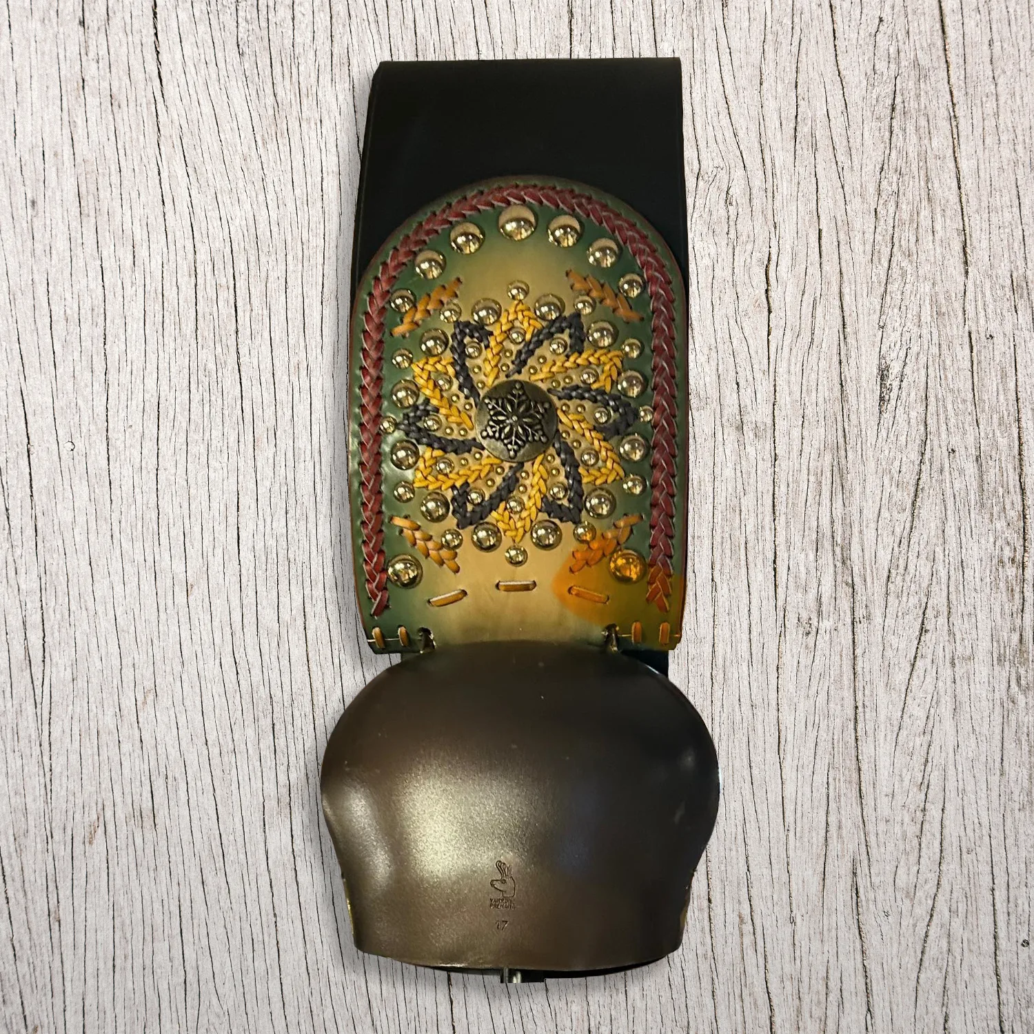 Campana Varrone Premana n.17 completa di collare in cuoio decorato